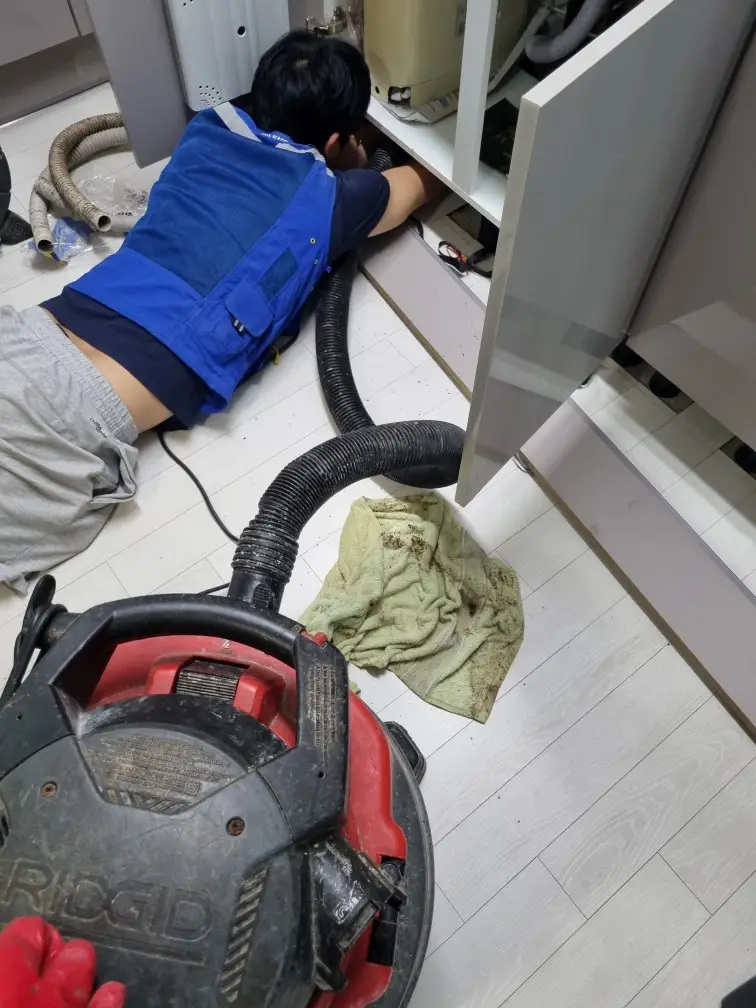 아파트나 빌라에서 싱크대 물이 잘 내려가지 않고, 여러 층에서 동시에 배수가 느려진다면 공동 배수 샤프트가 막혔을 가능성이 있습니다. 이때는 단순 배수구 청소가 아니라 샤프트 관통 작업이 필요합니다.